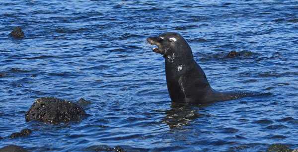 After landing on a black sandy beach and putting our shoes on we headed down a dusty path to the adjacent short line where lots of animals concentrate. One of them is the Galapagos fur sea lion, away from the sand to avoid overheating they can be found on rocky areas as they provide shade for their comfort while they are on land. Phenomenal lava arches filled with sea water surround the area and makes it look pretty also. So this place has everything; wildlife, geology, plants, waves and more.