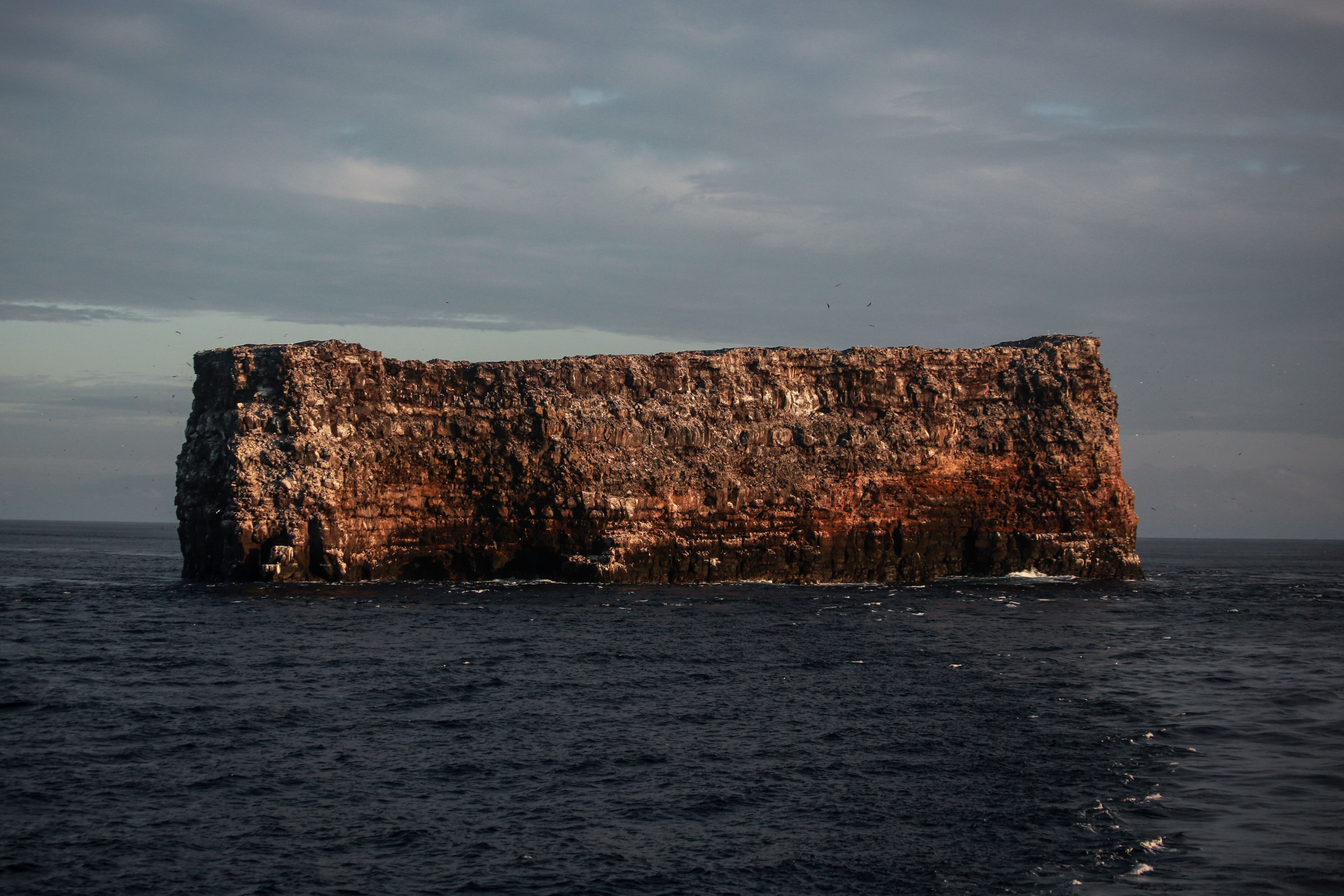 Sadly, our expedition aboard National Geographic Gemini is nearing its end. Our day began with a hike at the base of towering cliffs. A steep ascent led us to a plateau of a palo santo forest, sparse and otherworldly. Almost immediately, we were surrounded by red-footed boobies nesting in low trees and Nazca boobies on the ground. A highlight was spotting a short-eared owl perched silently among a lava crevice, camouflaged and hunting storm petrels. The calls of frigatebirds rang in the air, with their inflated red pouches on full display in a mating show. After our hike we enjoyed water activities, such as kayaking along the cliffs and snorkeling. In the late afternoon, we landed on the coral sand beach of Darwin Bay. Guests enjoyed a relaxing stroll along the shoreline bordered by mangroves and nesting bird colonies. The presence of swallow-tailed gulls, lava herons, and marine iguanas provided excellent photo opportunities.