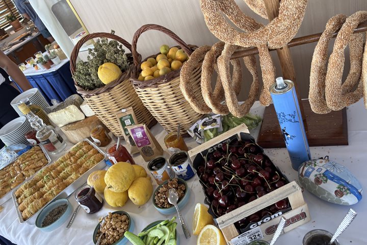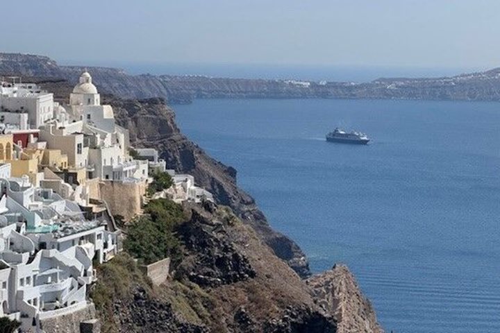 After lunch, we returned to the island where we explored the Thera Museum to learn about the history of the Archaic through Byzantine eras, learning about the trade routes of the islands. This was followed by a deep dive into the unearthed Pompeii-like, Akrotiri. It was a picture-perfect day with blue skies and domed white buildings capping the volcanic peaks, and we walked the town of Oia with our cameras capturing every breathtaking view.