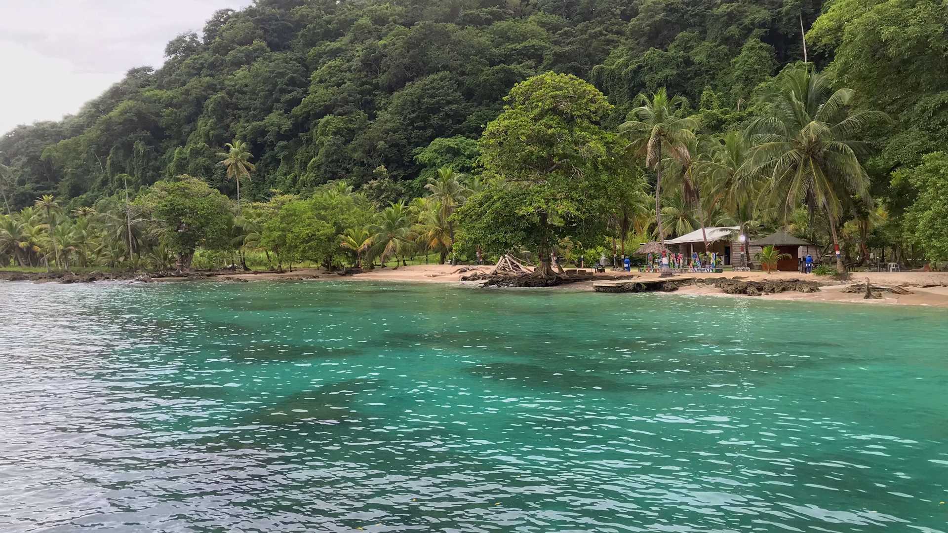 To get to Sapzurro, we hiked through the rainforest of El Darien Gap for two miles, passing the border midway. We took a nature walk to a nice waterfall. At the end, we made it to our beach station, where local fruit juices and snacks were waiting for us.