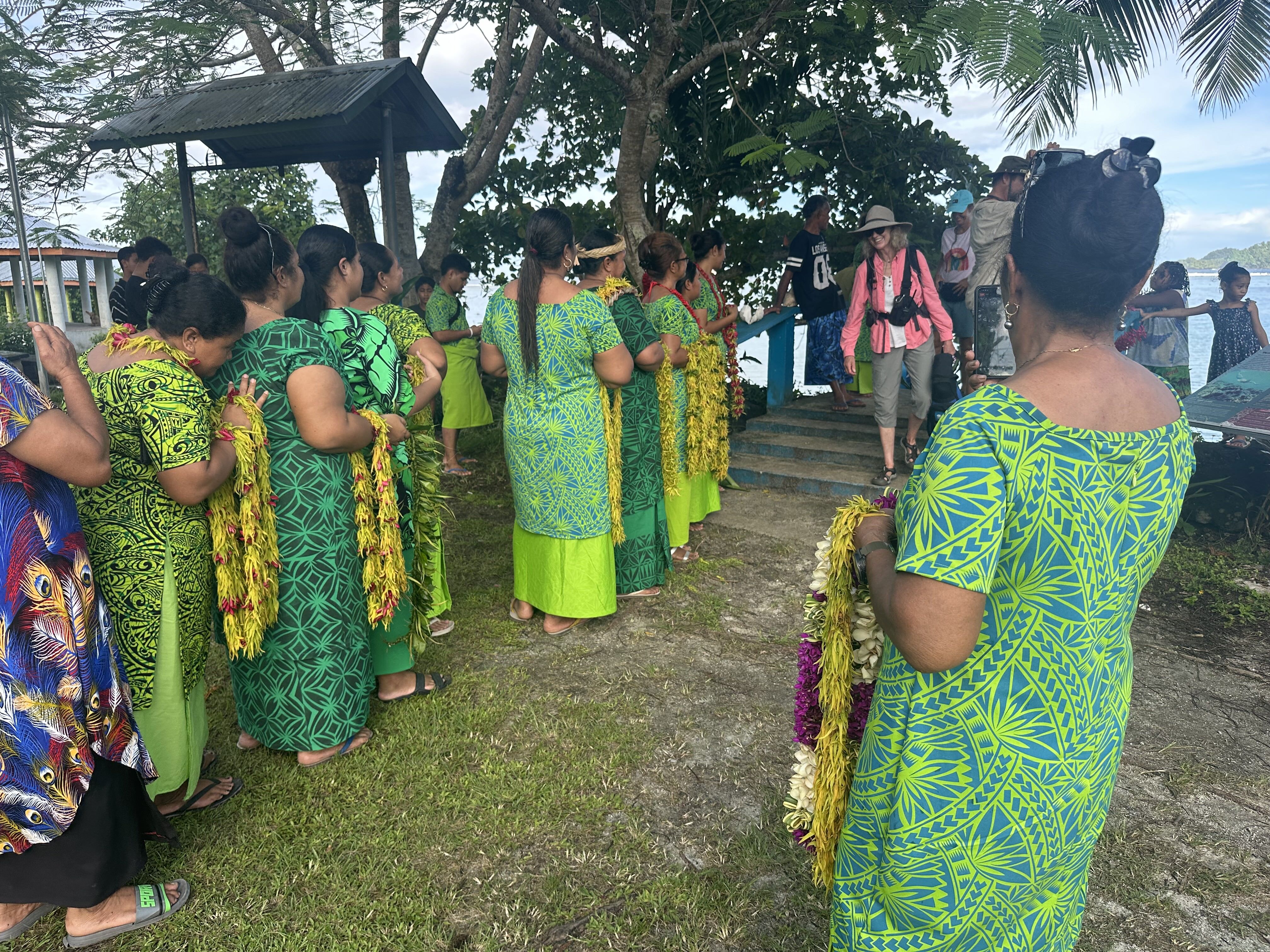 We were welcomed by everyone in the village, and the men and women performed a beautiful and colourful dance for us. Afterward, they told us about the Giant Clam Sanctuary that has been in the lagoon in front of the village for 30 years. We then went snorkelling right there, enjoying the water and the abundant clams, some of which were huge!