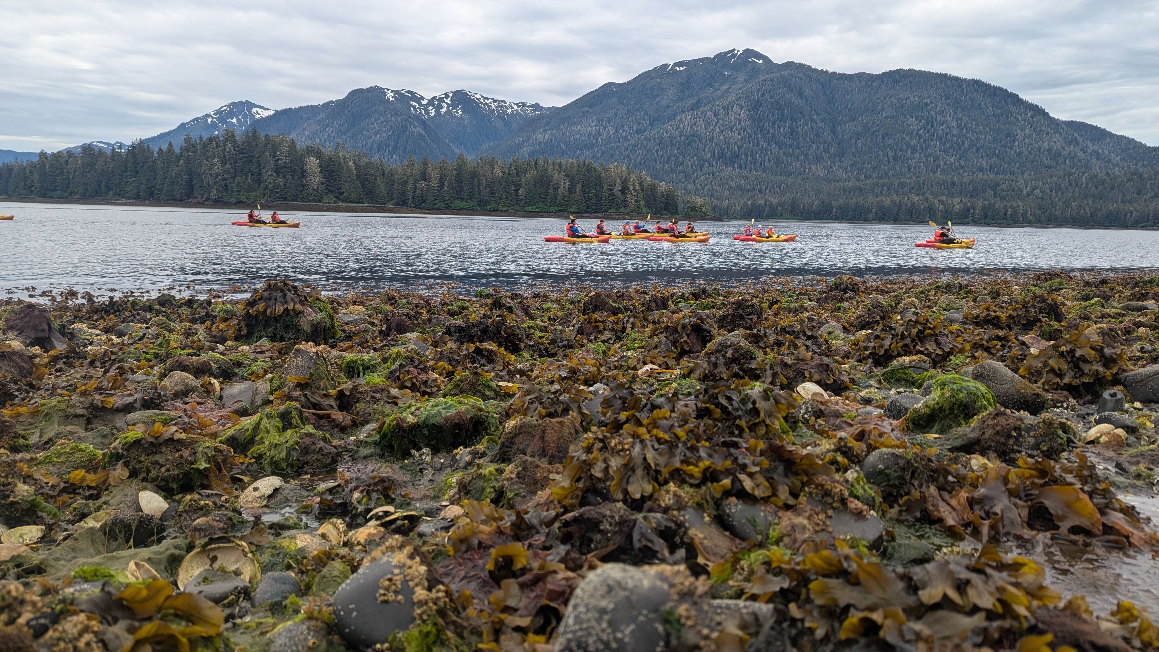 On our fourth day of “Exploring Alaska’s Coastal Wilderness” we awoke in Security Bay, at the north end of Kuiu Island. Guests went ashore and alternated between kayaking along the coastline, and walking in the woods or along the shore. Some groups explored the animals within the intertidal zone, while others bushwhacked through thick forest.
