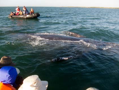 We navigated towards the central islands and at dawn found ourselves anchored off an extensive lava flow that dates from 1897. The view from the ship was otherworldly, miles of barren black lava and reddish cinder cones against a bright turquoise sea. After breakfast we boarded our fleet of Zodiacs and took a slow panga cruise along the lava shores. Marine iguanas were sunning; after spending time diving and feeding on marine algae in the chilly water they quickly warm up by basking on the black rocks under the tropical sun. Small secretive striated herons prowled along or stood statue-still hunting for tiny Sally Lightfoot crabs or small fish that approached too close to shore. Sea lions as usual stole the show! A huge territorial male barked and patrolled and rolled in the surf with a female and a gang of at least a dozen pups splashed and chased in what we couldn’t resist calling a “kiddie pool.”