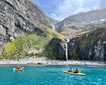 While some guests went ashore, others cruised near the shore in Zodiacs where they encountered our expedition divers calmly dropping into waters that hovered slightly below freezing. Jan Schmid, who made his first ever polar dive today, offered lessons in German, exclaiming “Mich friert es im Gesicht.”