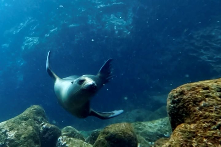 Afterward, our ship navigated for about one hour and 45 minutes towards Santa Fé Island, which was named after a city in Spain. On the way, we received our snorkeling equipment and safety briefing. Soon, we were immersed in warm waters and observing the amazing marine diversity at this heavenly site. Lastly, we concluded the day with a 300-meter walk along a dry forest and we got the chance to admire the endemic Santa Fé land iguana among the tall cacti.