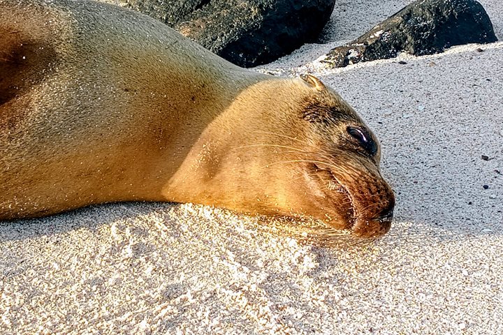 This morning National Geographic Islander II anchored near two uplifted islets located on the eastern side of Santa Cruz Island. We started our day with an early morning walk on South Plaza, a .13 km2 islet with a 1-km trail that includes a 30-meter cliff. Here we explored the unique ecology, which included prickly pear cactus, the endemic Galápagos land iguana, pillow lava, and uplifted coral from the islet’s creation. We also witnessed a conservation program by the Charles Darwin Research Station called “Green Galápagos 2050.” This project aims to recover the opuntia plant species.