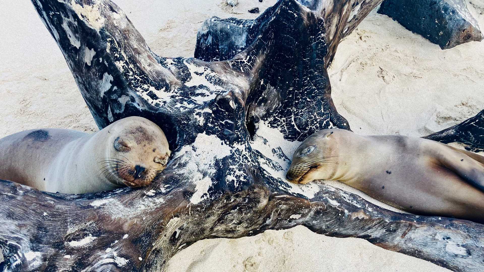 Early in the morning we visited the small Island of South Plaza. After a dry landing on a small pier, we were surrounded by young Galapagos sea lions, as the colony of this mammal is very dense here. The amazing and unique landscape of Plaza is surrounded by cliffs, where colonies of different marine birds can be observed, like swallow-tailed gulls, Nazca boobies, and great frigate birds. The fantastic Galapagos land iguana was resting beside our trail below some prickly pear cactus.
