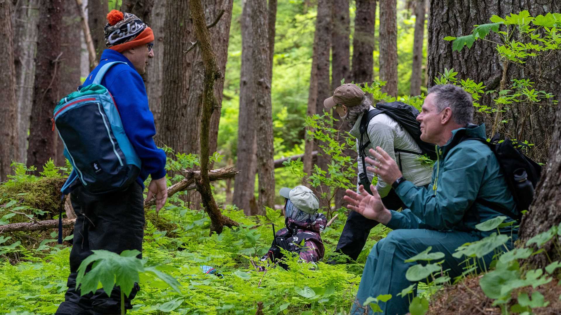 We had an incredible day exploring Southeast Alaska, starting with Peril Strait. As we cruised along the narrow passage, we saw a plethora of bald eagles hunting for fish. We watched at least seven eagles soaring and diving for food as we sailed through Chatham Strait. Guests were excited to see a coastal brown bear foraging on the shoreline. We brought out the scope and headed out to the bow to enjoy watching this bear look for food. After lunch, we went ashore. Some guests took an exploratory hike, some combed the beach, and some enjoyed a Zodiac cruise, where they were treated to views of a gray whale. As if things couldn’t get any better, we were interrupted by a huge group of humpback whales bubble-net feeding as we ate dinner. We were treated to a show of tremendous power and strength. While watching the bubble-net feeding, two more coastal brown bears appeared on the shoreline. Guests had the option of watching whales feed to the right of the boat or brown bears foraging to the left, which turned out to be a very hard decision.