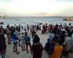 This morning we were enjoying safety demonstrations when a message came from the bridge that a humpback whale carcass was floating near the ship. When we got close, we could see sharks feeding on the carcass. A good day for the sharks, not such a good one for the whale.