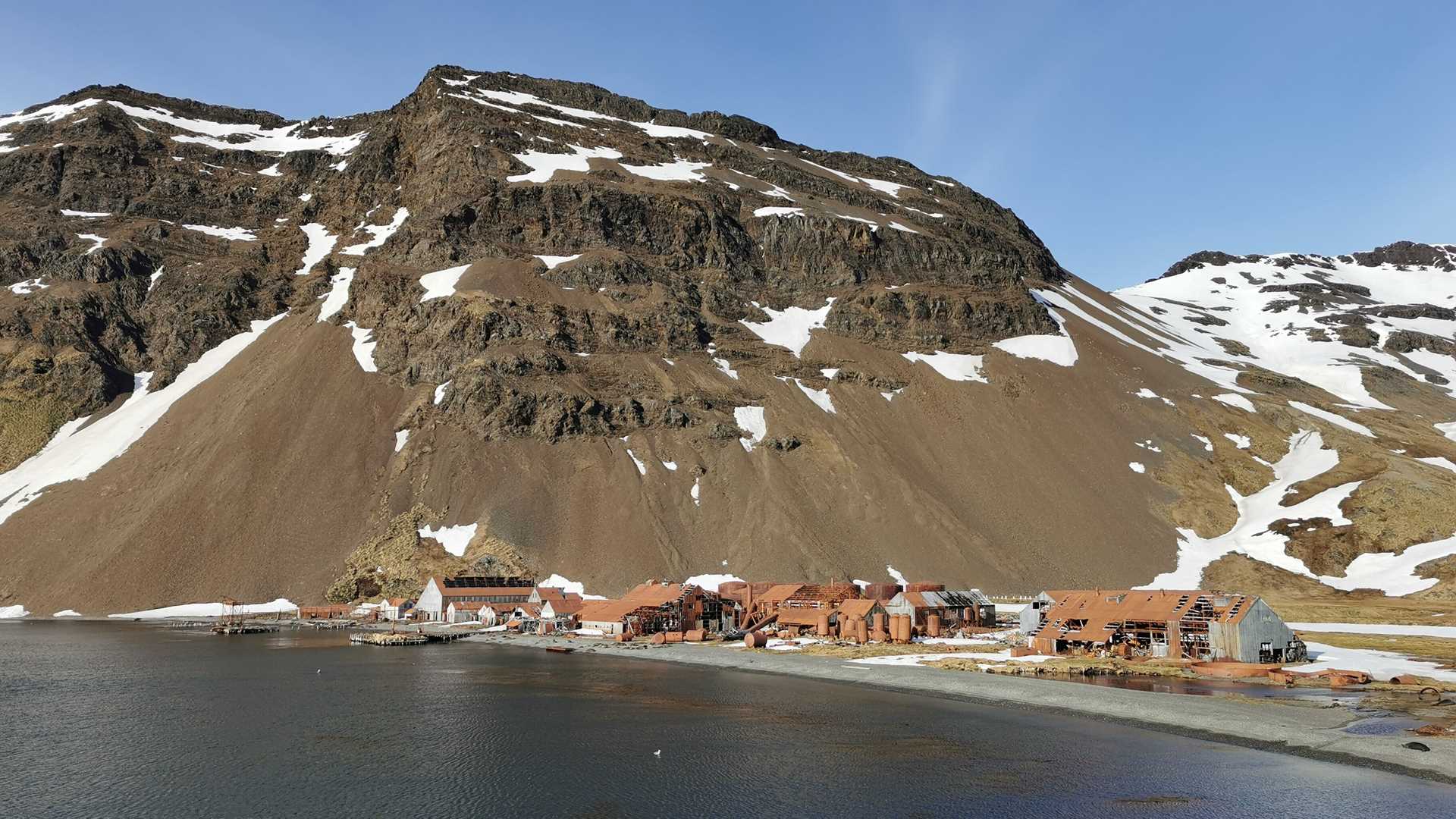 We made our way up the coast of South Georgia and arrived at the bay of Stromness not long before breakfast. The weather was particularly pleasant, with blue skies and almost no wind. We landed near the abandoned whaling station of Stromness, which is famous as the site where Tom Crean, Frank Worsley, and Ernest Shackleton were first seen by anyone outside of their expedition following their failed journey into the Weddell Sea. Here we walked up the snow-covered valley to Shackleton Falls, believed to feature in their story. We spent some time near the shore, observing the antics of elephant seals.