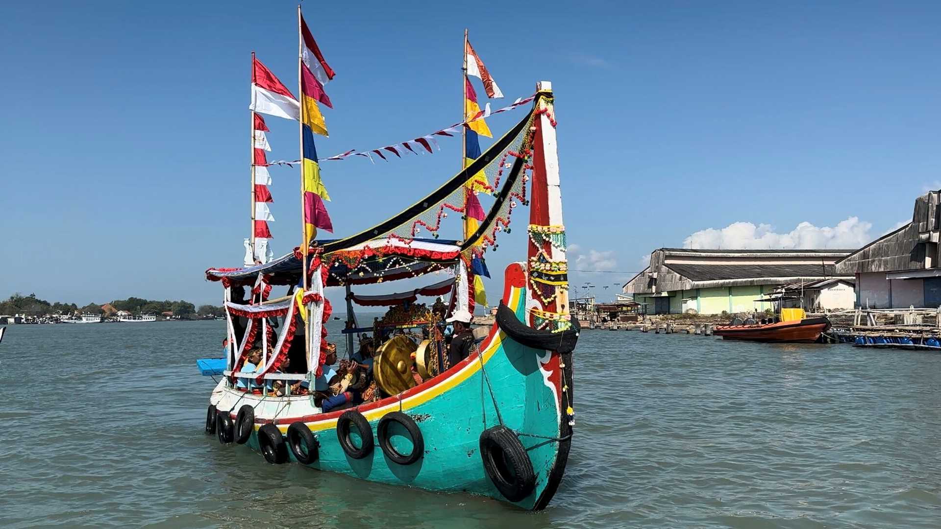 This morning, we hopped into the Zodiacs right after breakfast and headed ashore to Madura, a relatively quiet and little-visited island off the northeast coast of Java. After a welcoming ceremony in which several of us were presented with traditional Javanese headdresses, we boarded coaches for a short ride to the town of Sumenep. Here we were greeted again by a happy throng of children, wizened elders, and a wonderful band that combined a gamelan orchestra with an enthusiastic brass band. They led us to the royal palace, where we were treated to a fantastic cultural performance and a wonderful spread of local food and drink.