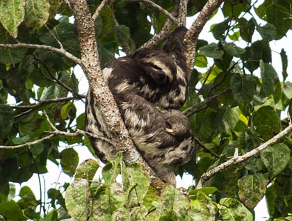 Lots of new colorful birds, such as masked-crimson tanagers, red-capped cardinals, plum-throated cotinga and scarlet-crowned barbets were sighted along the river bank. As we continue our delightful ride, we stop at the base of a group of threes with a specific characteristic: they all produced a special sap that a certain little monkey likes. Sure enough, a small little head started to pick through the branches and we then all saw him! The pigmy marmoset is among the smallest primates in the world, and certainly one of the smallest in this region. We spent some time observing his behavior, and also making sure that everyone had a good look at it.