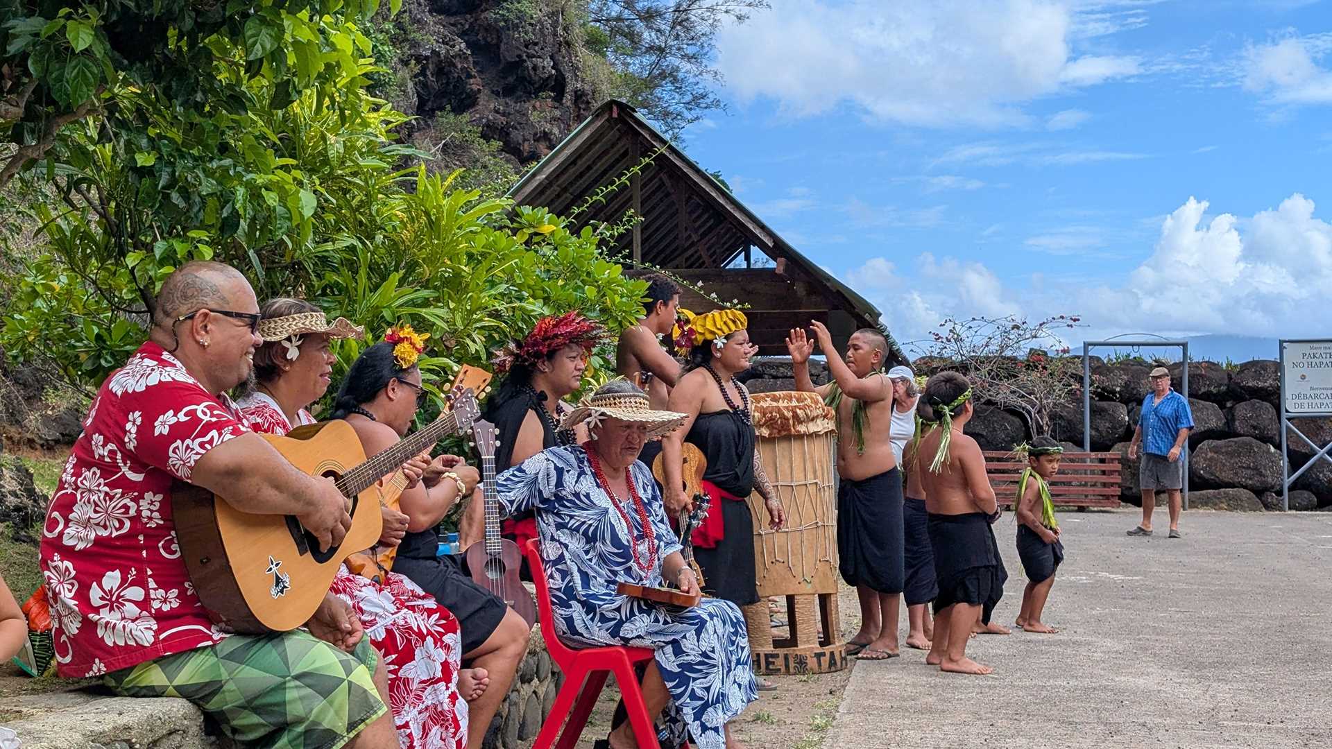 A truly remarkable day unfolded for us today in the village of Hapatoni on the island of Tahuata. An early morning search for the elusive and endangered kingfisher, restricted to only this island, gave way to an incredible welcome and performance from our hosts in Hapatoni. The beautiful culture of the Marquesas Islands and their amazing spirit of welcome and hospitality were showcased in full force during an incredible display of dancing and song. Guests were given opportunities to purchase local crafts and art before returning to the ship for lunch. We spent the afternoon snorkeling or taking to the island again for a walk to a gorgeous waterfall. We finished the day with a delicious barbecue dinner on the sundeck while our hosts from Hapatoni joined us on board. After dinner, we were treated to more song and dance from the islanders in a performance so moving that many were brought to tears.