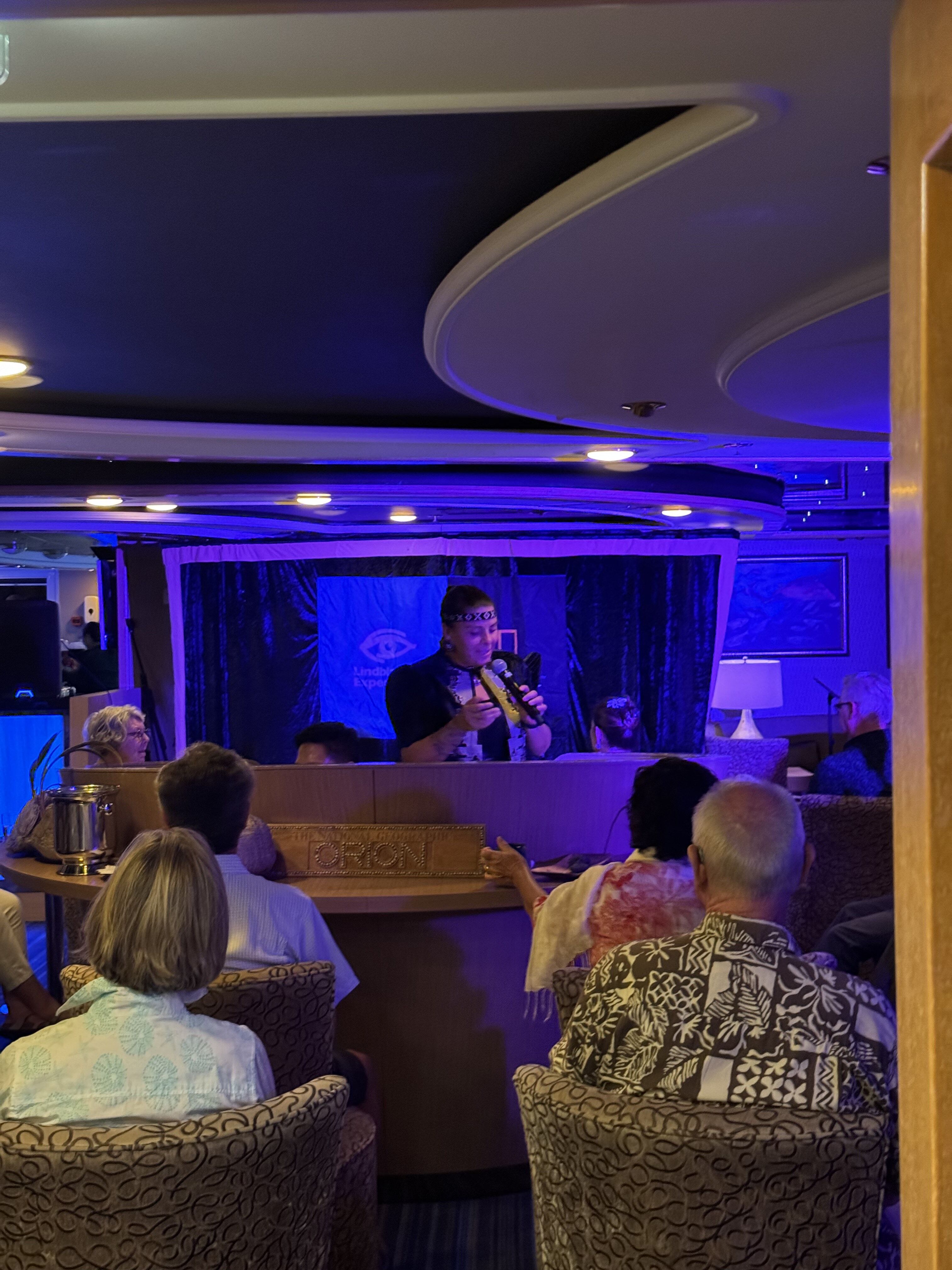 After dinner, we gathered on the bow – lights off – to learn about the night sky from Master Navigator Tua Pittman.