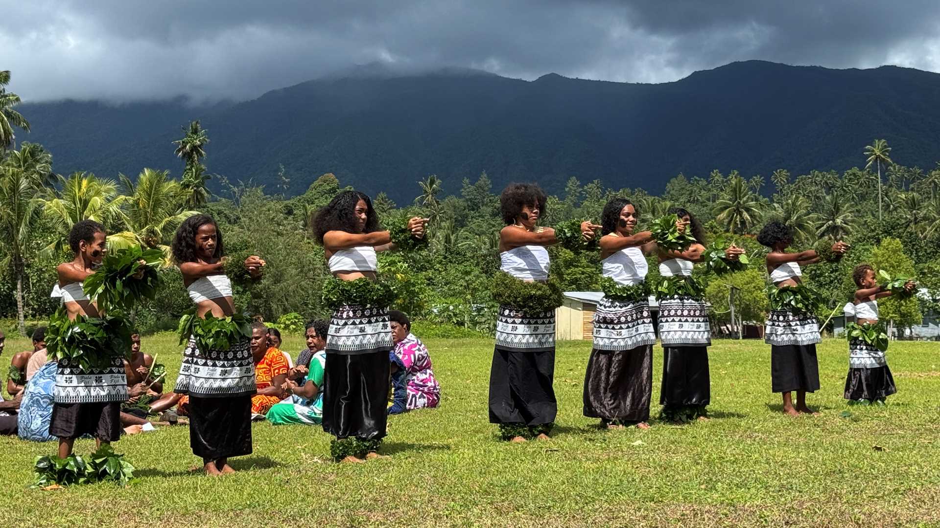 This morning National Geographic Orion dropped the hook off Fiji’s third largest island, Taveuni. Because of the abundant tropical vegetation, it is affectionately known as the garden island of Fiji. From the landing we took an open-air bus to the village of Waitabu. Travelling the coastal rim-road we could see the staple crops of cassava, taro, and breadfruit growing along the side of the road. At the village, we were welcomed by men singing and women who adorned us with beautiful leis made from masi/tapa and croton. After an introduction to the kava ceremony by our local guide, we then watched the beautiful tradition of preparing and serving this ancestral beverage of the Pacific Island cultures. After the ceremony, the young members of the community performed some lovely dances and we sampled some local cuisine.