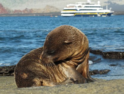 At 0600 hours National Geographic Sea Bird is entering the lock at John Day Dam. At 110 feet, this is the highest lift-lock in America. Here we have been delayed by barges going into the lock ahead of our ship. A waning crescent moon peeks between the clouds and Venus shines brightly below it. The weather is noticeably warmer today with the temperature at 50 degrees Fahrenheit—nearly 20 degrees warmer than yesterday morning on the Palouse River.