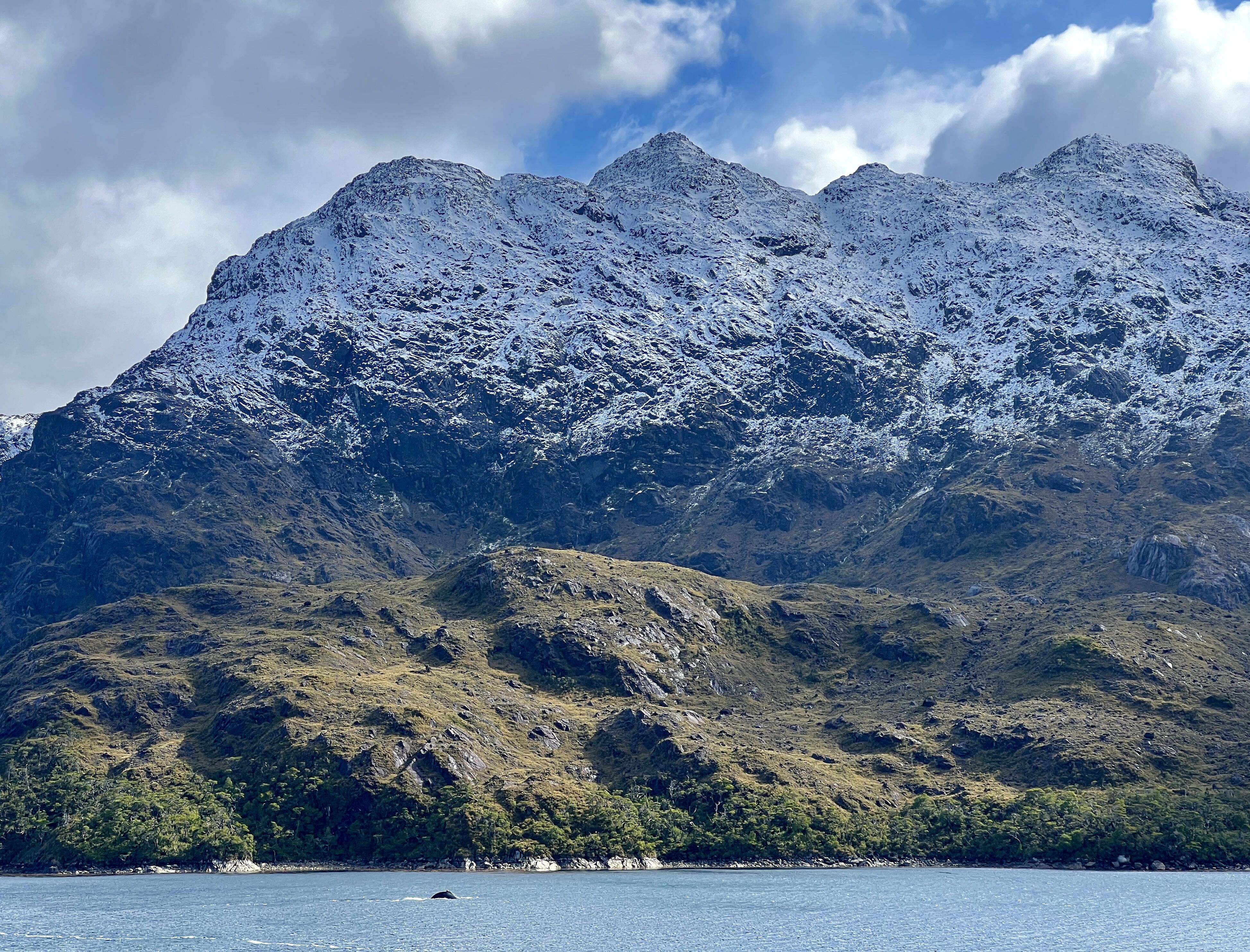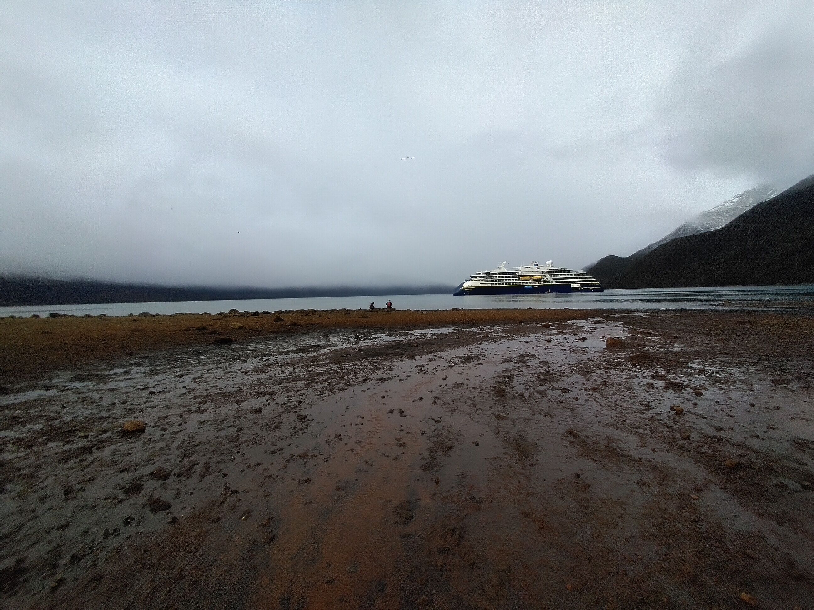Today, we let the mercurial Patagonian weather determine the direction of our adventures. The morning saw us exploring Parry Fjord, once visited by the HMS Beagle in its hydrographic duties in the 18th century. An eerie backdrop of bleached Nothofagus trees (also called southern beeches) framed our expedition. We ambled along a pebbled beach and explored a peat-tinted waterfall. On our return to the ship, we were treated to submarine footage from Staten Island that was collected and presented by our incredible underwater team.
