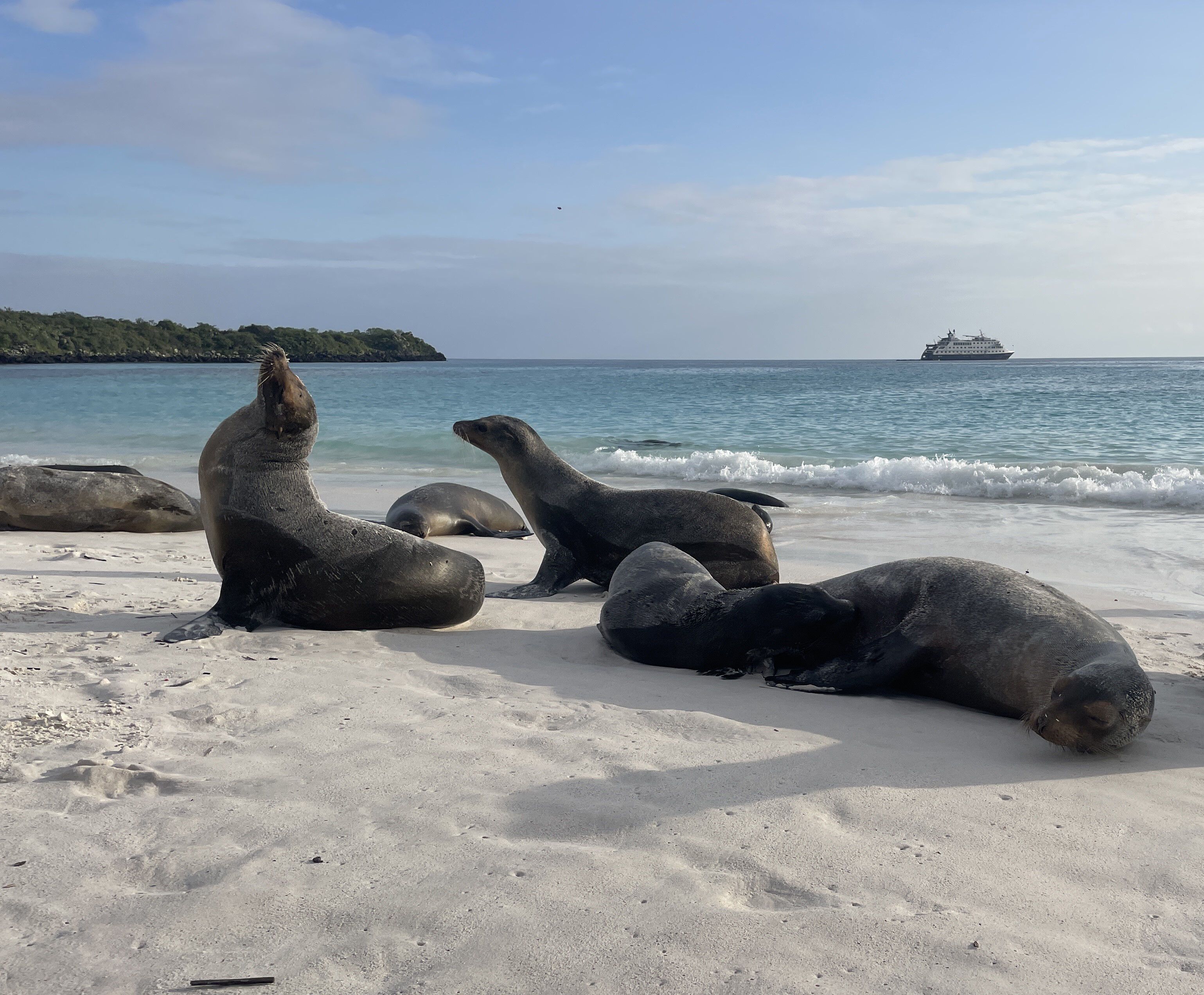 After a sumptuous lunch of local grilled delicacies, we took advantage of a good weather window to reach Jackson Bay. Part of Karukinka Natural Park, the bay is home to a colony of elephant seals. A flock of guanacos surprised us as we hiked through the forest to a serene waterfall.