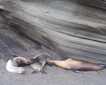 After lunch guests were treated to fantastic views of Hole in the Wall Waterfall, where water flows over a gaping cavity in the rock face. Shortly thereafter, a black bear was spotted and the ship maneuvered in for a closer look. Large, healthy, and alone, the bear was found lying in the yellowish seaweed in the upper intertidal, chowing on tasty barnacle morsels. Eventually it wandered away, and the ship headed to Williams Cove. A few intrepid hikers hit the beach for a pleasant beach/forest stroll in the rain, enjoying views of scoters and harlequin ducks out on the water. Others took to the kayaks, paddling in the quiet waters of the cove.