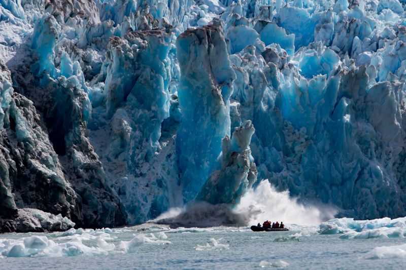 Our final day in Southeast Alaska was the perfect ending to a perfect trip. After a night with northern lights, all day today was sunny, warm, and without wind. Spending the entire day in Tracy Arm, we were in the presence of glaciers throughout. Getting out in the Zodiacs, surrounded by massive blue icebergs, with giant towers of ice plummeting into the sea….spectacular!