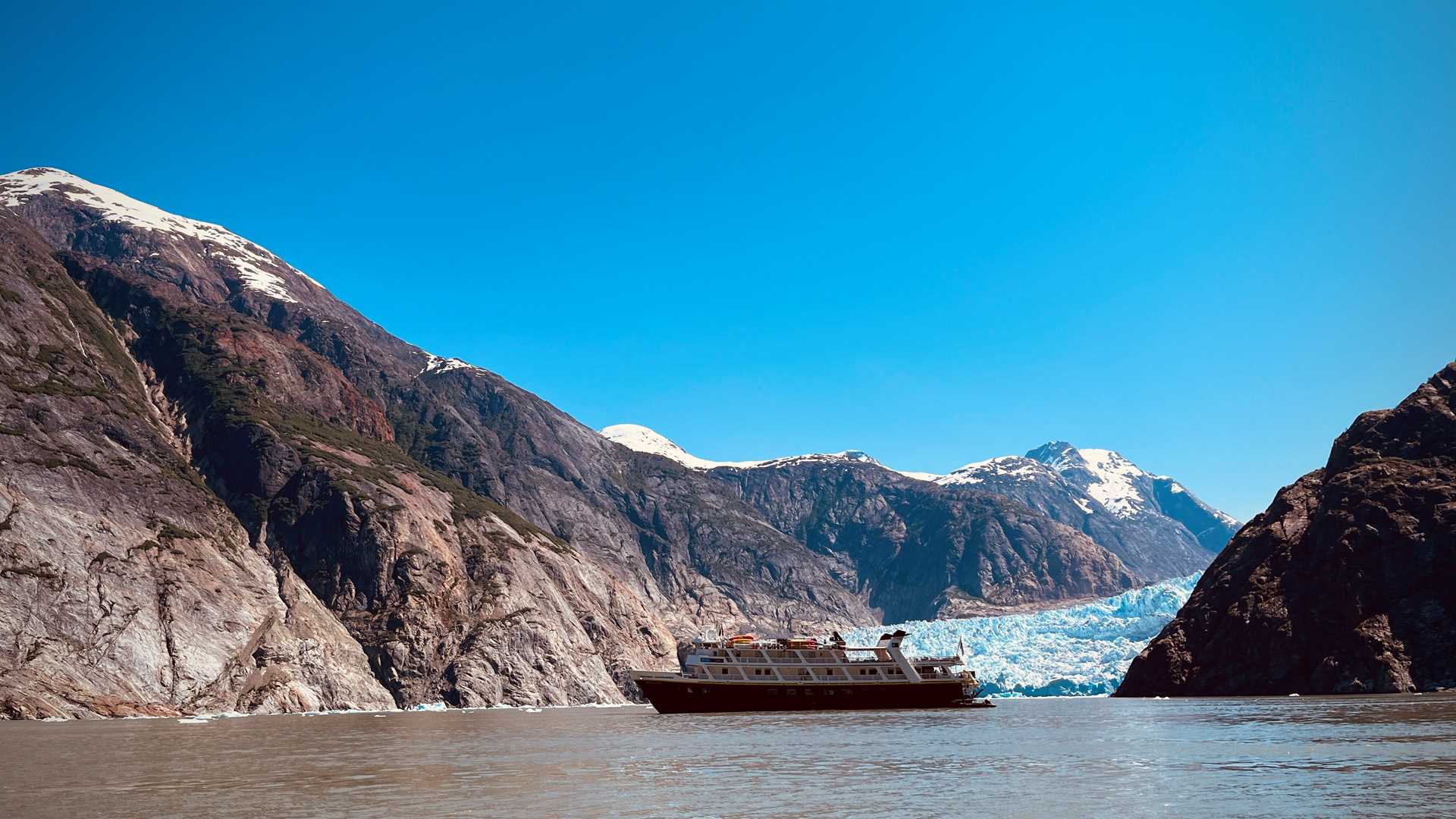 Our first morning aboard National Geographic Sea Lion, we awoke to blue skies and bright sun. Guests slowly started to make their way to the bow, coffee/tea in hand, to take in the many waterfalls cascading down the towering walls inside the Tracy Arm Fjord. Established by Congress in 1980 as a protected wilderness area, the Tracy and Endicott Arm Fjords average just one mile wide and offer a perfect opportunity to take in the grandeur of this vast wilderness.