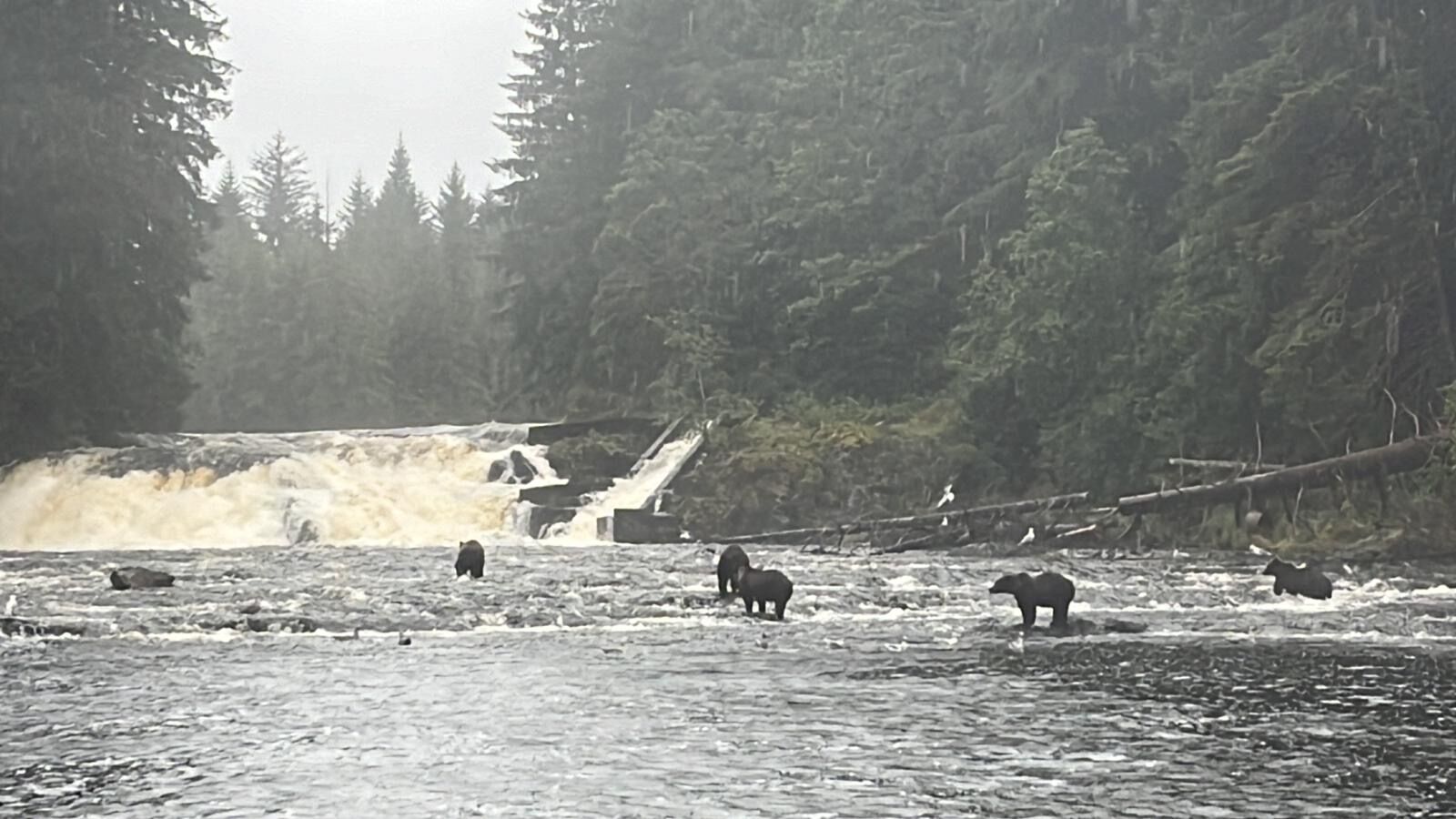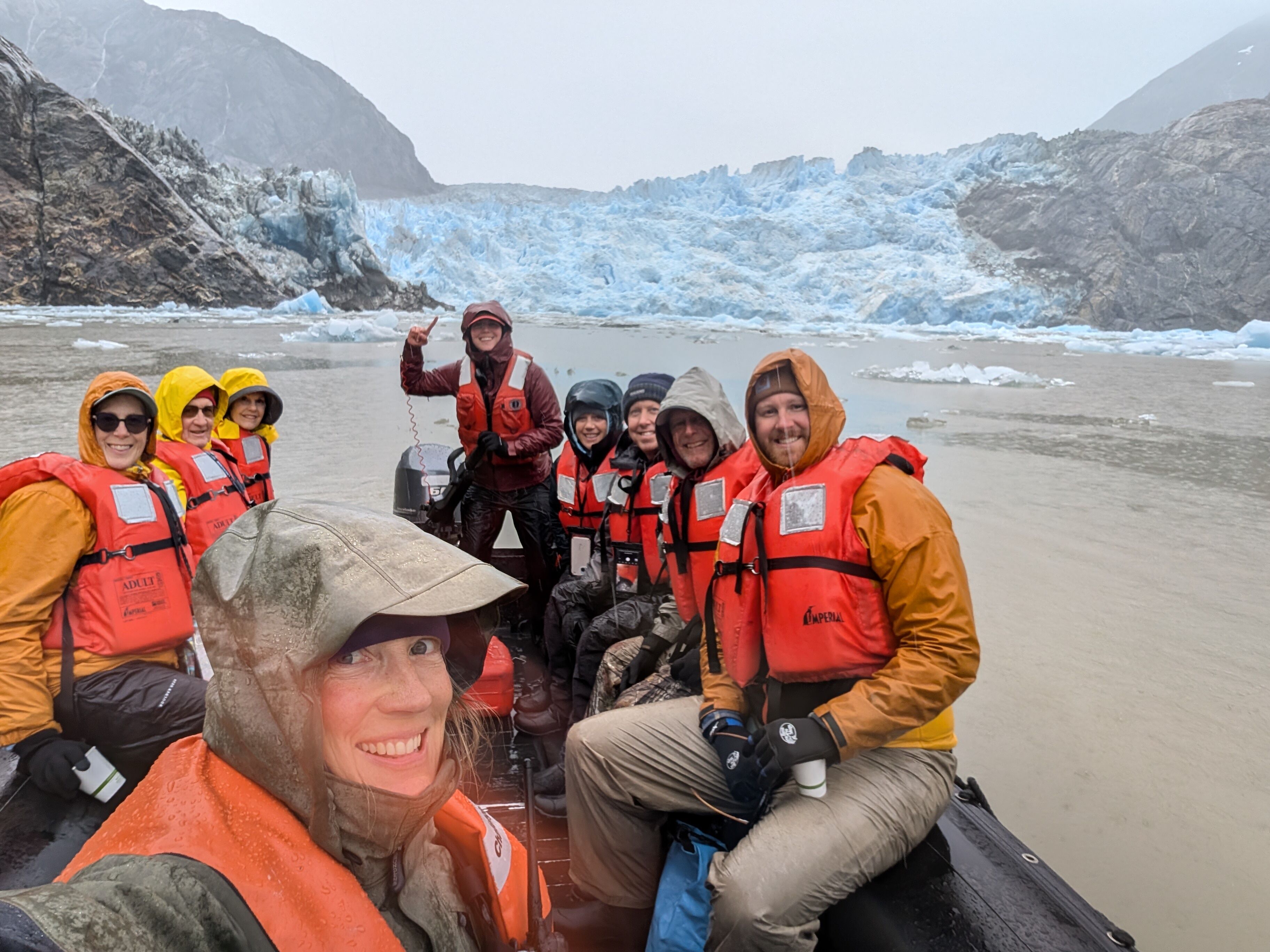 The rain that was forecast and promised for the whole trip finally found us today. But it did not dampen spirits — everyone was keen to get out in the Zodiacs for an up-close-and-personal experience with glacial ice and the surrounding environment. One amazing perk of the skies opening up on us was the enlivening of the mountains by an amazing abundance of waterfalls. They came in all forms — from trickles and slivers of white, to raging muddy torrents creating their own clouds of mist as they hit the fjord’s waterline. It certainly was an atmospheric morning afloat in front of South Sawyer Glacier, and the arrival of the hotel boat peddling its hot and spiked beverages was cheered by everyone.