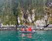 As we passed Sawyer Island, we saw that the ice would not be so thick as to hamper our approach to the glacier, and by 09:00 the first of our Zodiacs were headed off in a light, May mist. We saw (and were seen by) many seals as we made our way toward the glacier’s face, and just as the cold and damp were starting to penetrate, we were greeted by the storied cocoa pirates, bearing hot cocoa with a little something extra!
