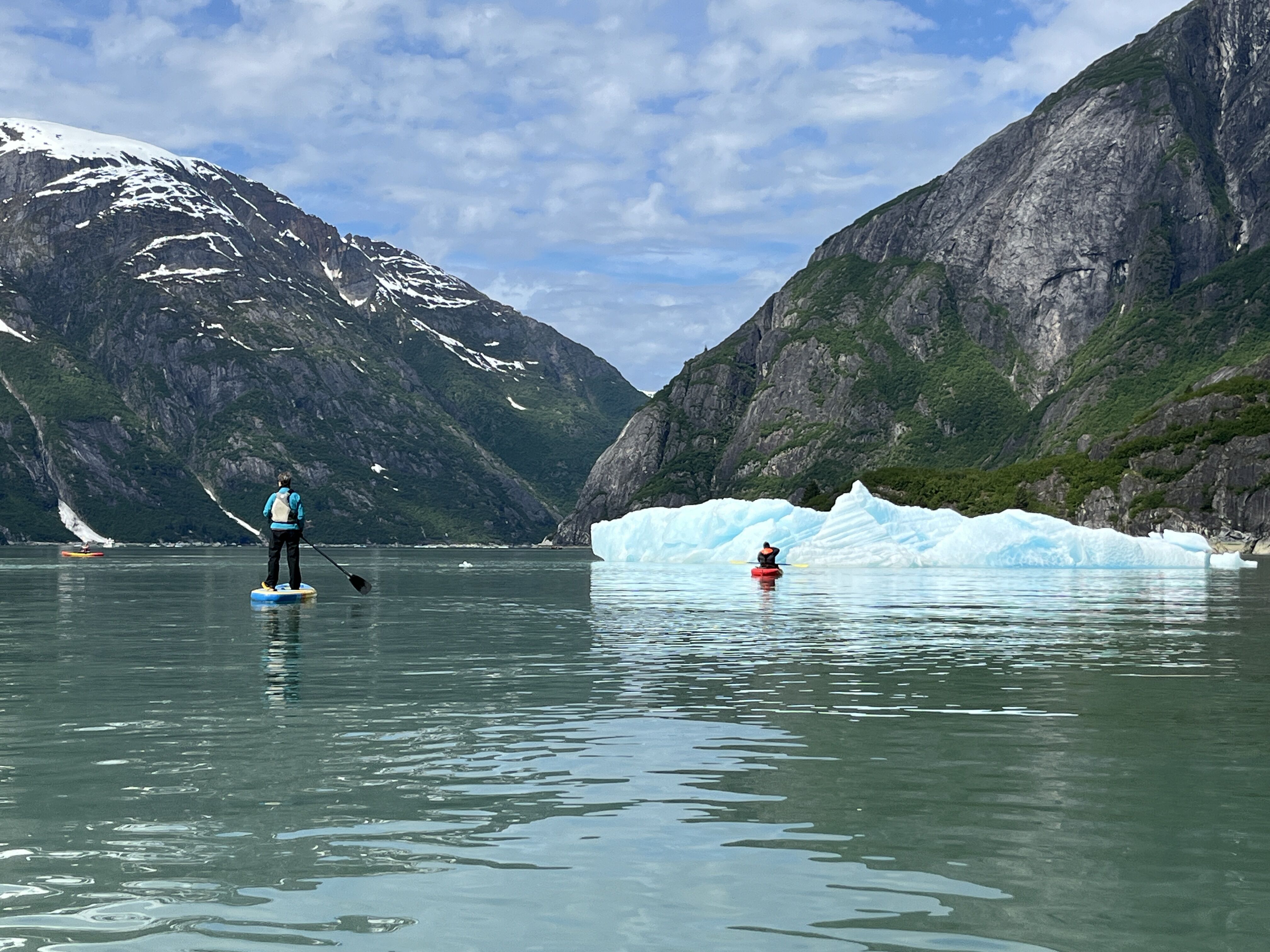 We started the morning with an optional stretch class and a wonderful breakfast. We spent the morning anchored in front of Sawyer Glacier among floating ice chunks with our sister ship, National Geographic Sea Lion, nearby. Three forest rangers paid us a visit to tell us about their roles and answer questions about the area.