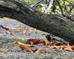 This day was spent at the largest island of the Galapagos archipelago, Isabela Island. In the morning the National Geographic Islander was anchored at Urbina bay where the waters were calm and clear. As the Zodiacs approached we observed Pacific green sea turtles and resting nicely on the bottom of the black sand were several diamond sting rays. The long hike took us along the rocky coast, a great place for Sally light foot crabs, huge male marine iguanas, and flightless cormorants! We then headed inland to observe the giant coral heads, proof that the whole area had been underwater. The area was uplifted in the 50’s and since then vegetation has covered this location and now it is a perfect site for Galapagos land iguanas. We observed a female land iguana right on the trail and underneath the poison apple trees we found several male land iguanas. We arrived to the black sandy beach, where there was time for a good swim and a group of fearless guests even swam back to the ship!