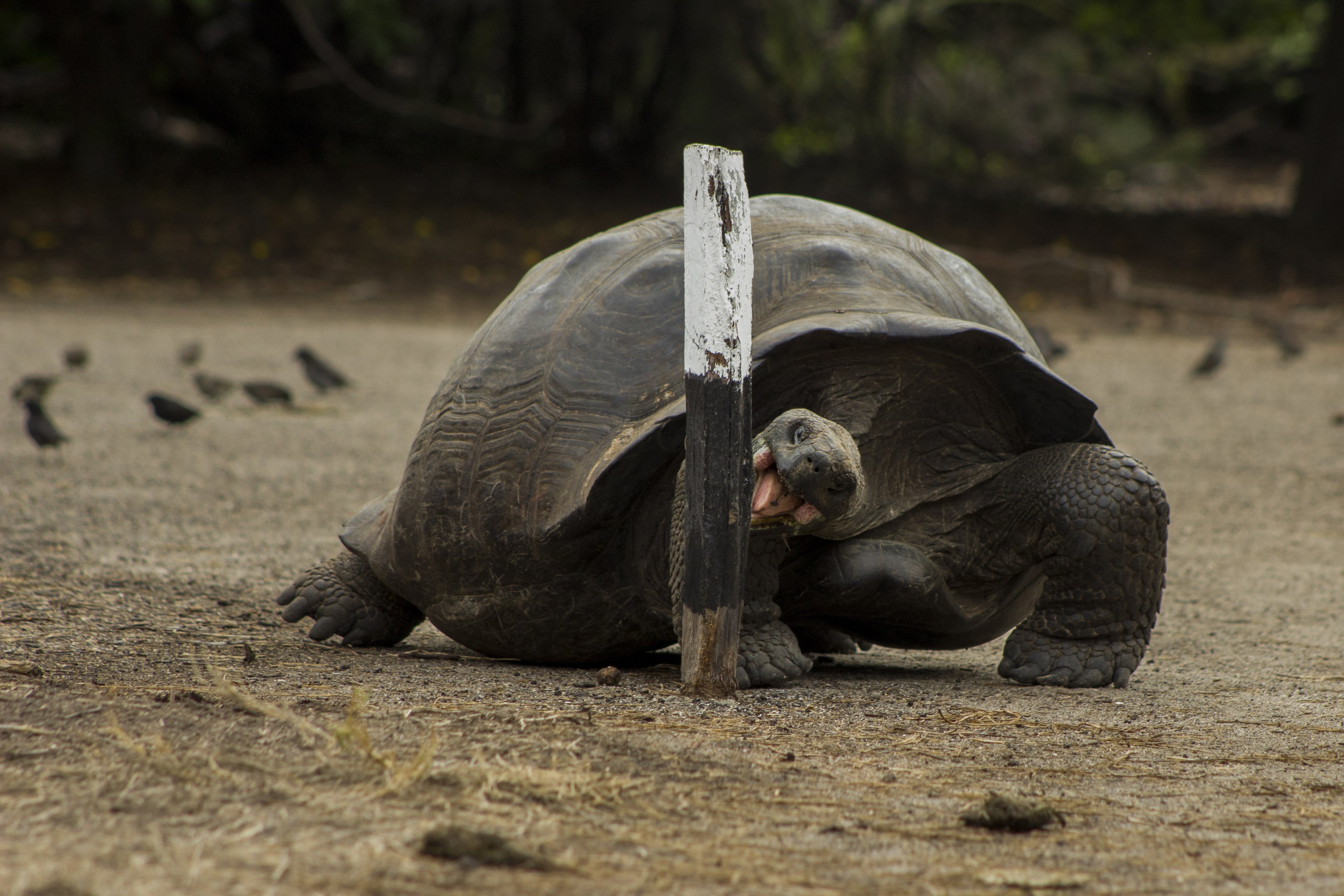 The day started with an overcast sky and fog surrounding the shoreline of Isabela Island. We landed on a black sand beach where sea turtles lay eggs every year. Our morning hike consisted of a loop trail through the forest of poison apple trees, where we found giant tortoises from the Alcedo Volcano. These prehistoric animals were looking for food and sunbathing in the middle of the trail, a very convenient situation for our photographers.