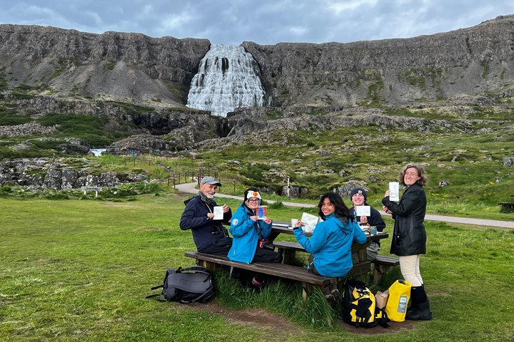 During the morning, a good variety of activities were offered. Many guests went hiking in the sunny weather to see the protected landscape and its diversity of birds and plants. Some guests opted for a village tour. Afterwards, we all gathered in the combined museum and World Heritage Information Center where we learned about the natural history of Vega and the importance of the Common eiders in the local culture. Coffee and delicious waffles served at the end was an extra treat that was much appreciated.