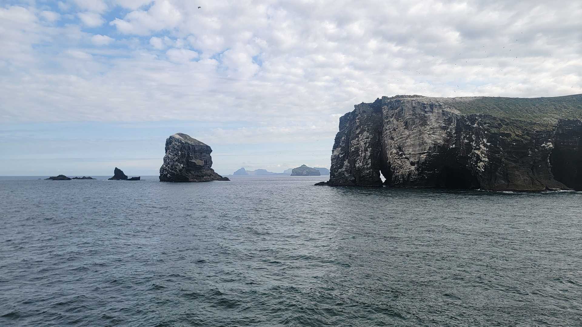 The last day of our circumnavigation around Iceland started with ship cruising around the beautiful islands of Vestmannaeyjar. The weather was beautiful but a bit overcast. While ship cruising, quite a few fin whales were spotted feeding. Soon enough, they were joined by a few minke whales. After a great show with the whales, it was time to leave them and for guests aboard National Geographic Explorer to head to lunch.