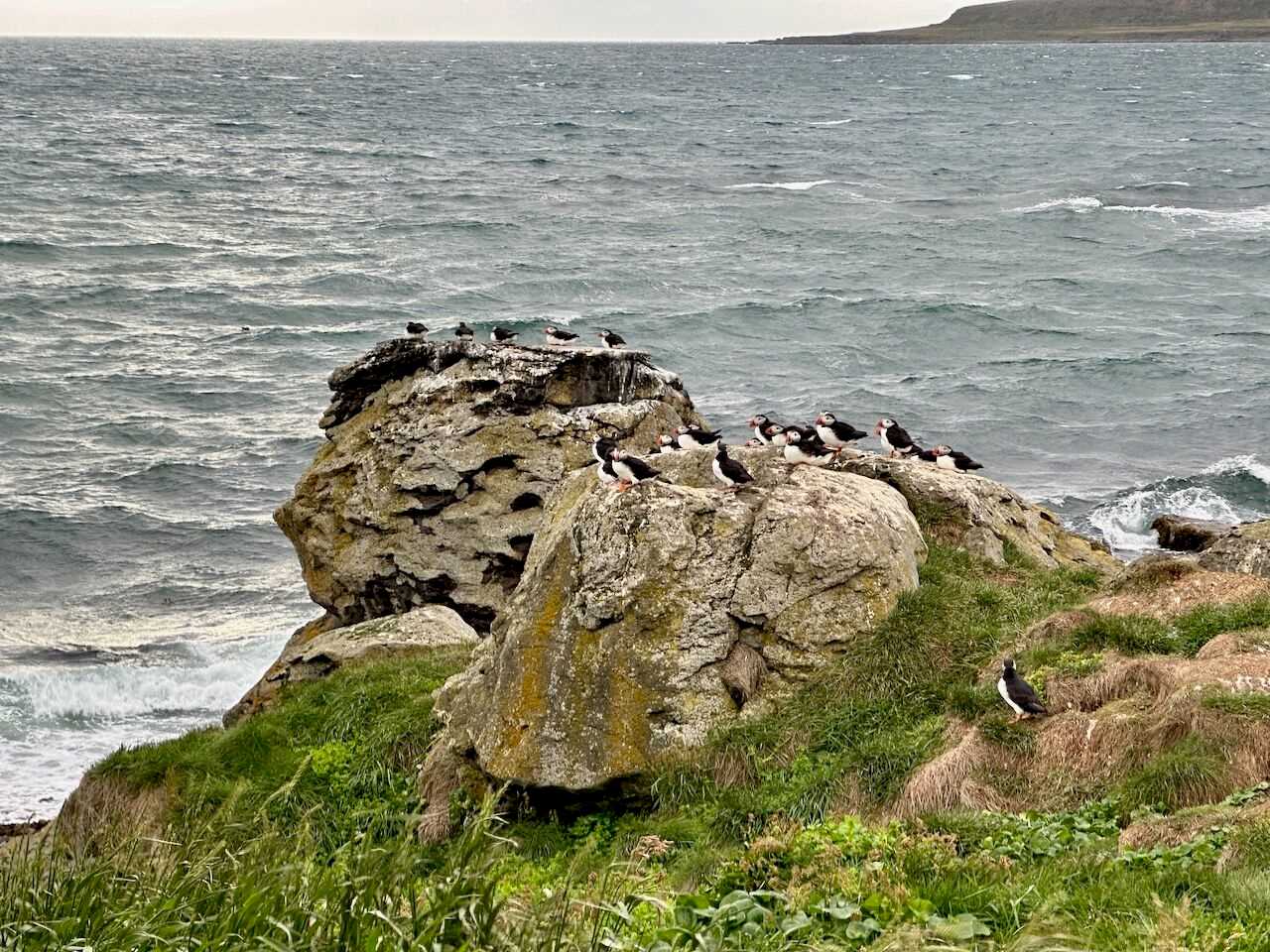 It is early, 6:30 AM, but the sun has been up for a couple of hours since it is still summer in Iceland. We are making a landing at Vigur Island, a working eiderdown farm and a sanctuary for all birds. The eider like to nest where there are humans as it seems to make them feel safer, and the down is collected only after the birds have finished nesting. A short walk proves that it is not just eider nesting here.
