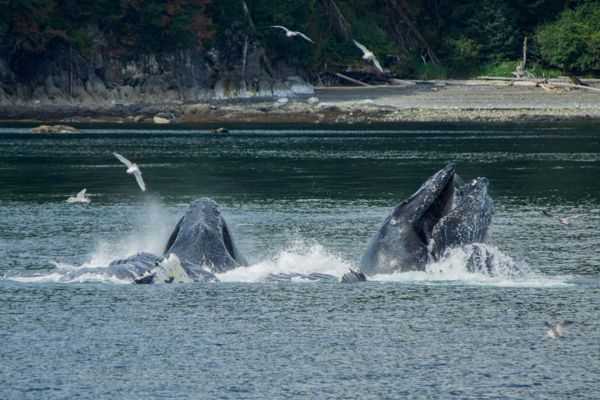 Today we awoke aboard the National Geographic Sea Lion near Warm Springs where our undersea team entered the water and we welcomed aboard Dr. Fred Sharpe of the Alaska Whale Foundation for a glimpse into his work studying the humpback whales of Alaska. Soon after he left, we had our own experience with these magnificent mammals as we watched and listened to a group take part in cooperative bubble net feeding. After some of being in the presence of the whales, we departed towards Lake Eva. There we hiked, kayaked, and explored by inflatable boat until we came back aboard and finally ended the night with another humpback experience before dinner.
