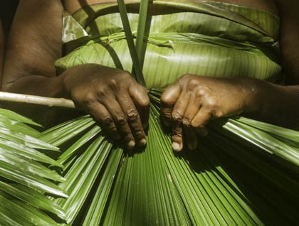 Back on the Jahan, we wait for two monks to arrive to do a blessing ceremony for the guests and the Jahan staff on the terrace deck. Two chairs are arranged in front of a table, filled with flowers and fruit. The blessing is recited in both Pali and Khmer, while water is sprinkled on the respectful crew seated on the floor with head bowed and hands pressed together. Donations are collected for the monks and their temple, and fruit and food are offered to the monks. One of the guides explains the proceedings and answers questions. It is customary to show respect to the monks by touching the ground or move the hands in prayer three times to indicate the Buddha, Dharma (or Teachings), and the Sangha (or Monkhood).