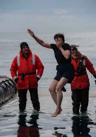 Soon, we are spotting more wildlife. An iguana is basking in the early morning sun. Small in size but long in name, a yellow-crowned brush-tailed rat peers out of its hole. Kingfishers rattle as they fly above while black-collared hawks scream at us. A beautiful red-and-orange flowered vine is attracting quite a lot of attention, and two species of monkey are feeding together. We silently sneak up in our kayaks to a bug-eating machine, an iridescent bluish-fronted jacamar. Sharp eyes spot a sloth, feeding on young leaves. Soon, it starts moving down, coming nearly to the ground and giving us our best views yet of a sloth. After a quick visit to a local village for some handicrafts, we make our way back to home sweet home, the Delfin II. As we are sipping fresh squeezed cocona juice, we watch capuchin and squirrel monkeys feeding beside the ship.