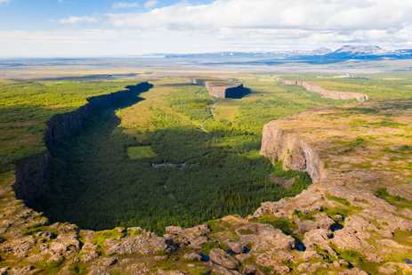 Norse legend tells that Sleipnir—Odin’s eight-legged steed—left a massive hoofprint in Iceland’s countryside when galloping across the sky. Venture into Ásbyrgi Canyon, this horseshoe-shaped depression just east of Húsavík where 300-foot cliffs surround a secluded woodland of birch, willow and mountain ash. Walk along stunning glacial riverbanks as you keep an eye out for the elusive arctic fox.